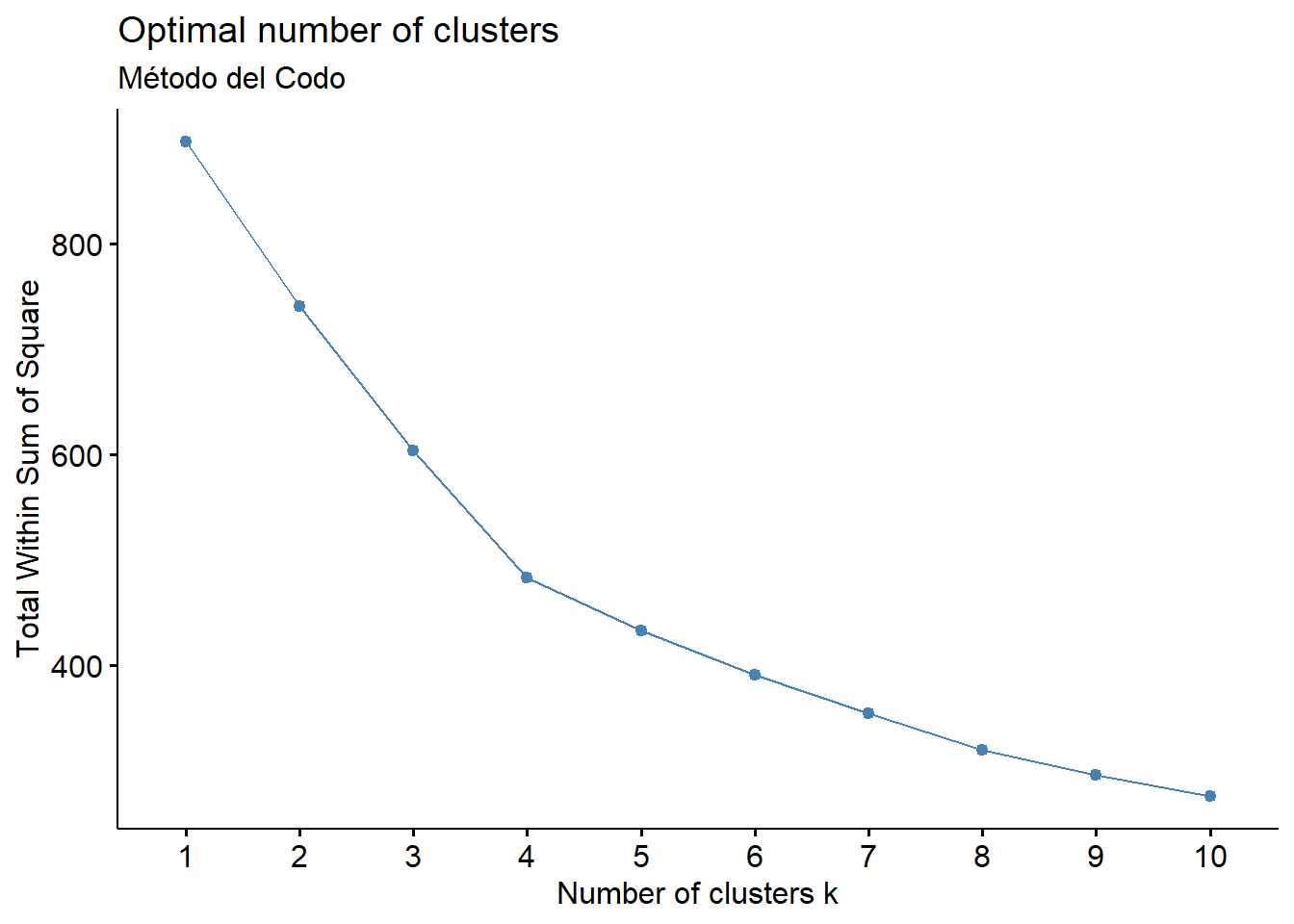 Basándonos en los resultados consistentes de nuestro análisis jerárquico exploratorio, fijaremos k = 4. Esta decisión ya no es arbitraria, sino que está fundamentada en la evidencia del paso anterior.