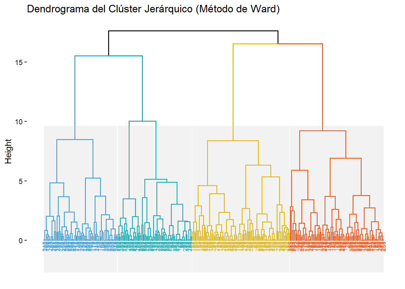 main = "Dendrograma del Clúster Jerárquico (Método de Ward)")Warning: `aes_string()` was deprecated in ggplot2 3.0.0.